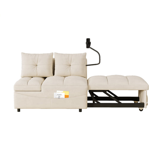 3-in-1 Sofa Bed,Convertible Sleeper Sofa with Pull Out Bed, Velvet Futon Couch Loveseat with Adjsutable Backrest and 2 Pillows for Living Room,Gray