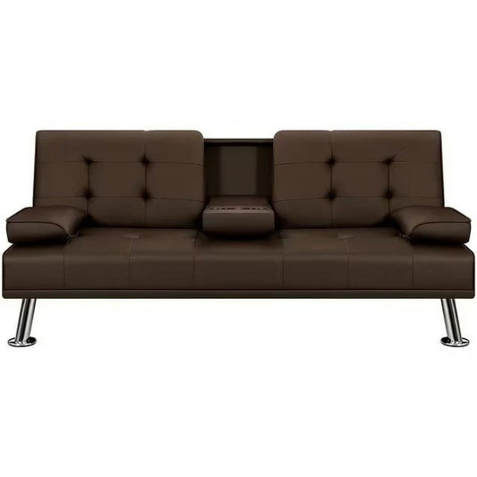 BEABA Futon Sofa Bed Modern PU Faux Convertible Couches with Cup Holder and Pillows Folding Furniture Upholstery