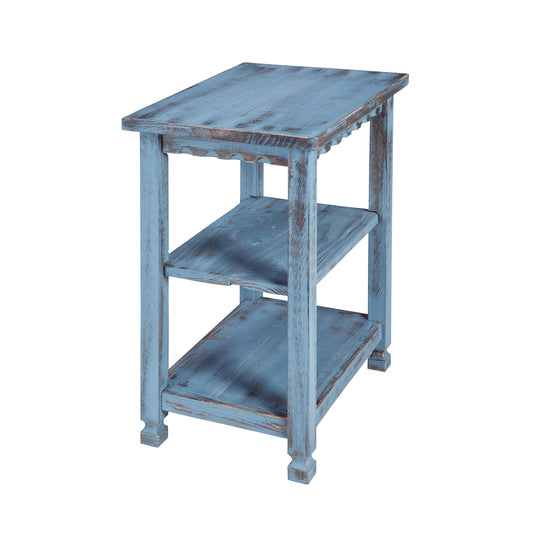 Alaterre Furniture Country Cottage End Table, Narrow Side Table with Two Storage Shelves, Rustic Farmhouse Night Stand or Living Room Furniture, White Antique Finish
