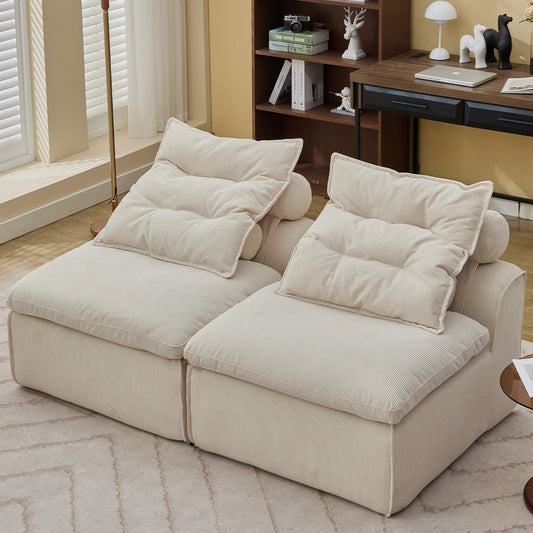 Modular Sofa,Soft Corduroy Fabric Loveseat Sofa for Living Roo,Upholstered Sofa Couch will DIY,No Armrests,Green