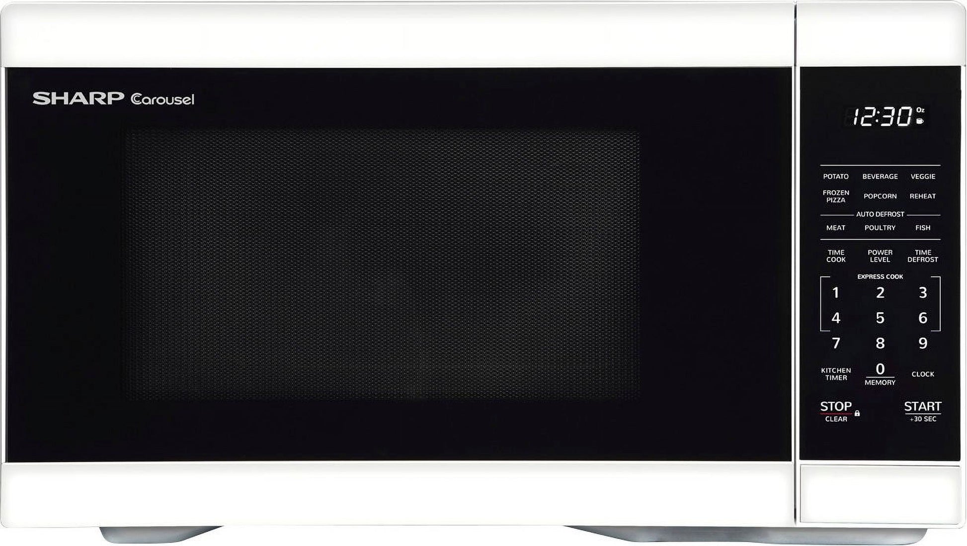 The Mid-Size, 1.1 cu. ft., 1000 Watt Microwave Oven in White takes up less space on your countertop and is our smallest oven for a full size dinner plate. The is packed with thoughtfull and innoivative features. Convenient preset buttons make cooking and reheating favorite foods and beveragesa breeze. Offer One-Touch cooking for up to 6 minutes. The +30 second key for instant start or adding time. Easy-to-clean White finish with stylish gray interior, and LED lights complement your style. The 12.4" Dishwasher safe glass turntable makes easy clean up. The White LED is bright and easy to read.