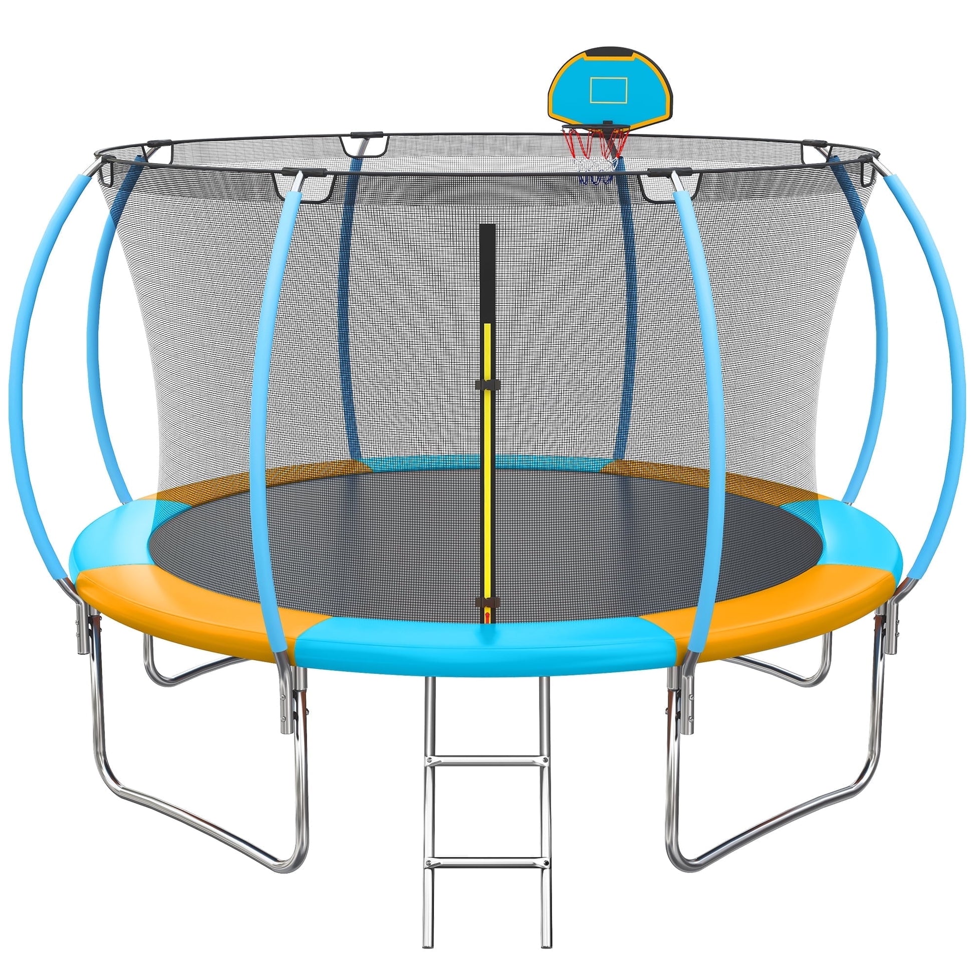 10 FT Trampoline for Kids with Basketball Hoop, SEGMART Upgraded Kids Outdoor Trampoline with Enclosure Net and Ladder, Heavy Duty Round Recreational Trampoline for Indoor Outdoor Backyard