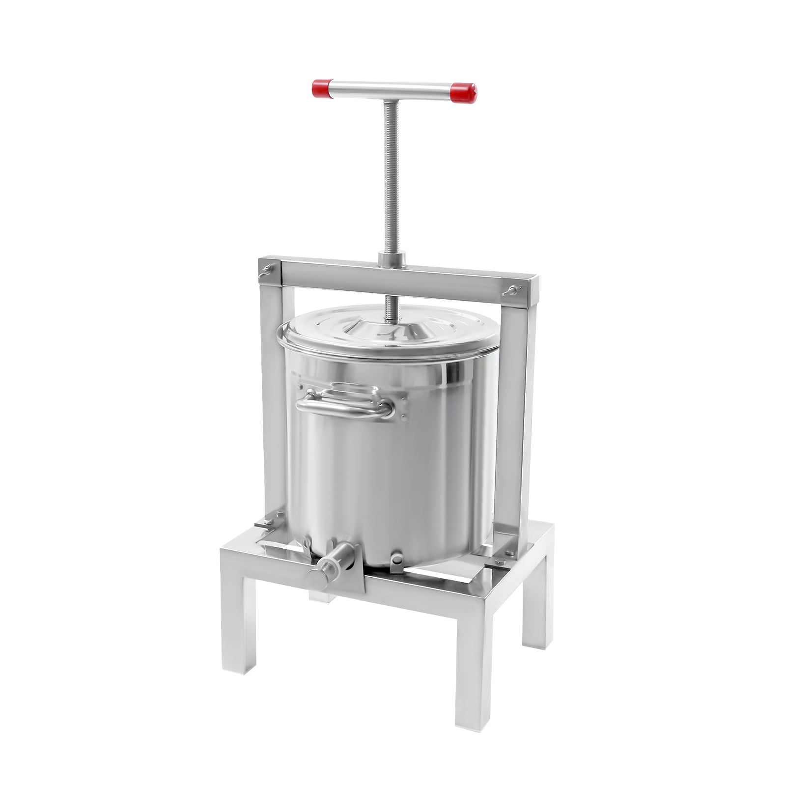 Description: Savor the satisfaction of freshly pressed juice or wine with this high-quality 2.6gal/10L manual wine presser. Made of durable, anti-rust stainless steel, this manual presser ensures a healthier alternative to electric juicers by minimizing oxidation and retaining maximum nutrients. With an ergonomic T-shape handle and a large capacity, this device makes juicing or wine-making easy, efficient, and fun. Perfect for creating DIY juice, wine, and even pressing honey or cheese, this presser will become an essential tool for your home, farm, or food-related business.