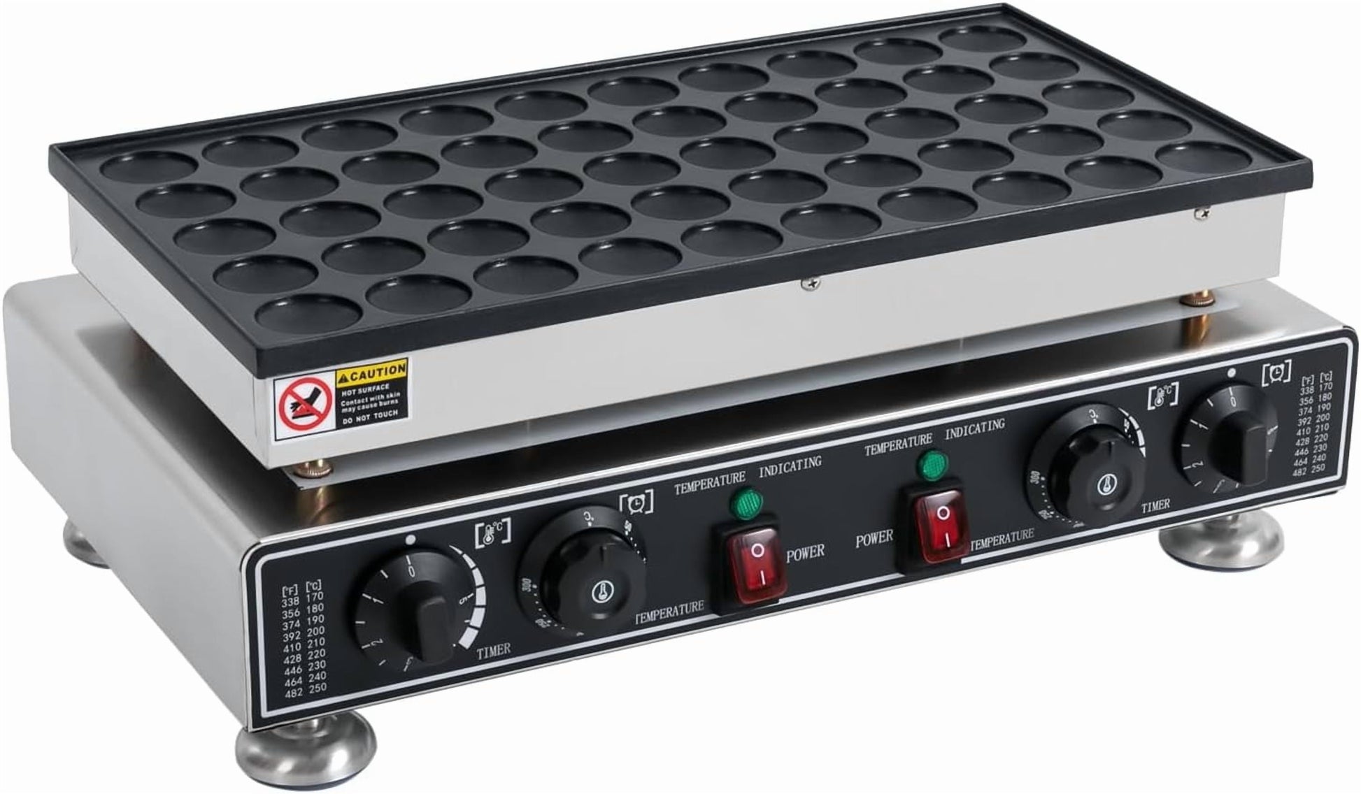 110V Mini Dutch Pancake Baker, 50PCS 1800W Commercial Non-stick Pancake Baker Machine with 50-300℃ Temp and 0-5 Time Control,Stainless Steel Pancake Maker for Home and Restaurants