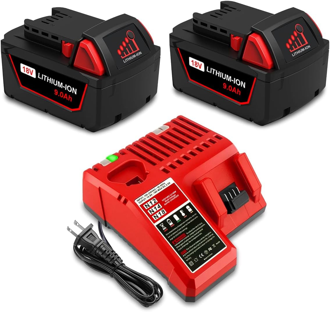 - ✅ Replacement: Replacement for Milwaukee 18V M18 Battery and Charger 18V XC 8.0 Ah 48-11-1880, 18V XC 9.0 Ah 48-11-1890 18V Lithium Battery and 48-59-1808 48-59-1810 48-59-2401 48-59-1204 48-59-1812 18V Rapid Chargers.