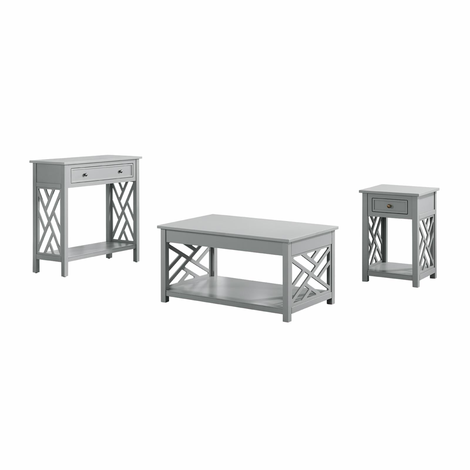 The Coventry 36" Coffee Table, End Table, and Entryway/Console/Sofa Table set is the perfect addition to any living room décor, whether your style is traditional, modern, cottage, loft, teen, or apartment. Perfect for those looking to add a modern, yet affordable accent furniture to their living room. Its clean lines and decorative side-element work in a range of decors and is sure to provide the ultimate, designer-look vibe to your home. Plus, with its easy setup, it makes an ideal addition for anyone looking for a simple, white end table or white table. Upgrade your home's décor with this Coventry Collection! The perfect blend of style, simplicity, and practicality, this set includes a coffee table, end table, and console table with drawers. Add the ultimate designer-look to your living room with this affordable, modern furniture set. Check out this stylish accent furniture for your cottage, loft, teen, or apartment today!