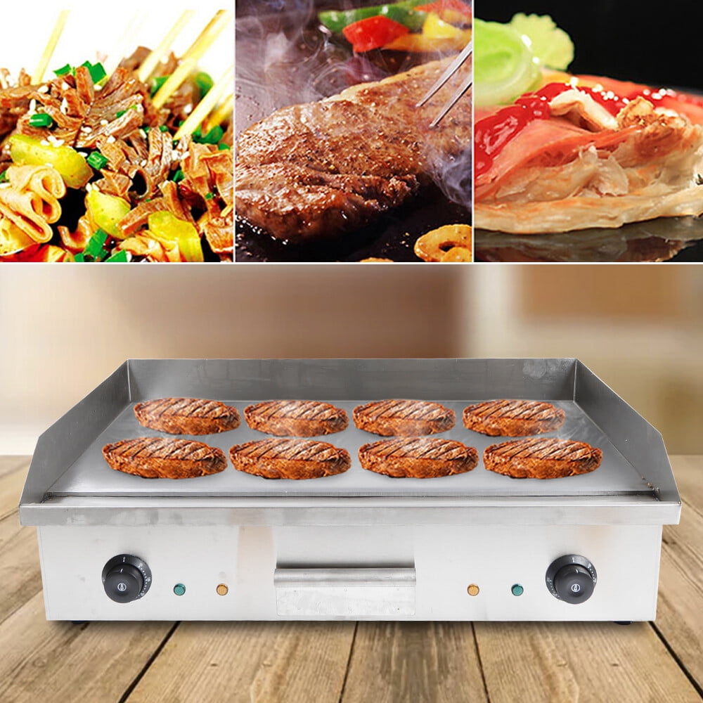 The commercial quality electric griddle cooktop boasts 3kw  of cooking power. It is versatile in cooking. Its griddle surface with even heat distribution is great for eggs, pancakes, hamburgers, chicken, vegetables, etc. With a large cooking surface, you can serve customers with speed or feed your hungry family in one go.