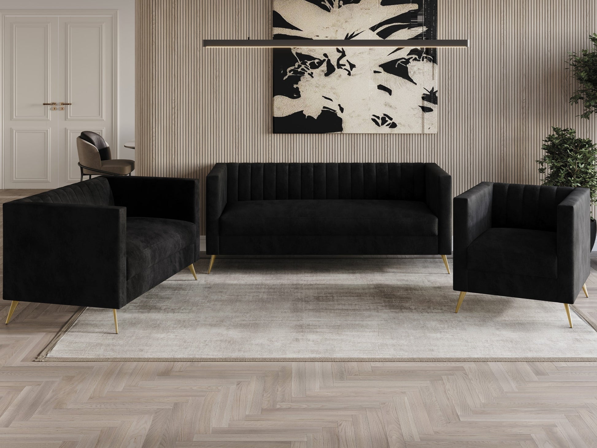 Add a touch of modern glam to your space with the Weiss Velvet Square Arm Chair. Upholstered in luxurious velvet, this armchair offers a soft, inviting texture that enhances both comfort and style. The sleek square armrests and vertical channel-tufted back create a sophisticated silhouette, perfect for contemporary living rooms, bedrooms, or reading nooks. Its striking design is supported by four sturdy gold metal legs, delivering both durability and a hint of glamour. Whether you're lounging, entertaining, or simply elevating your decor, the Weiss armchair makes a chic and functional statement piece.