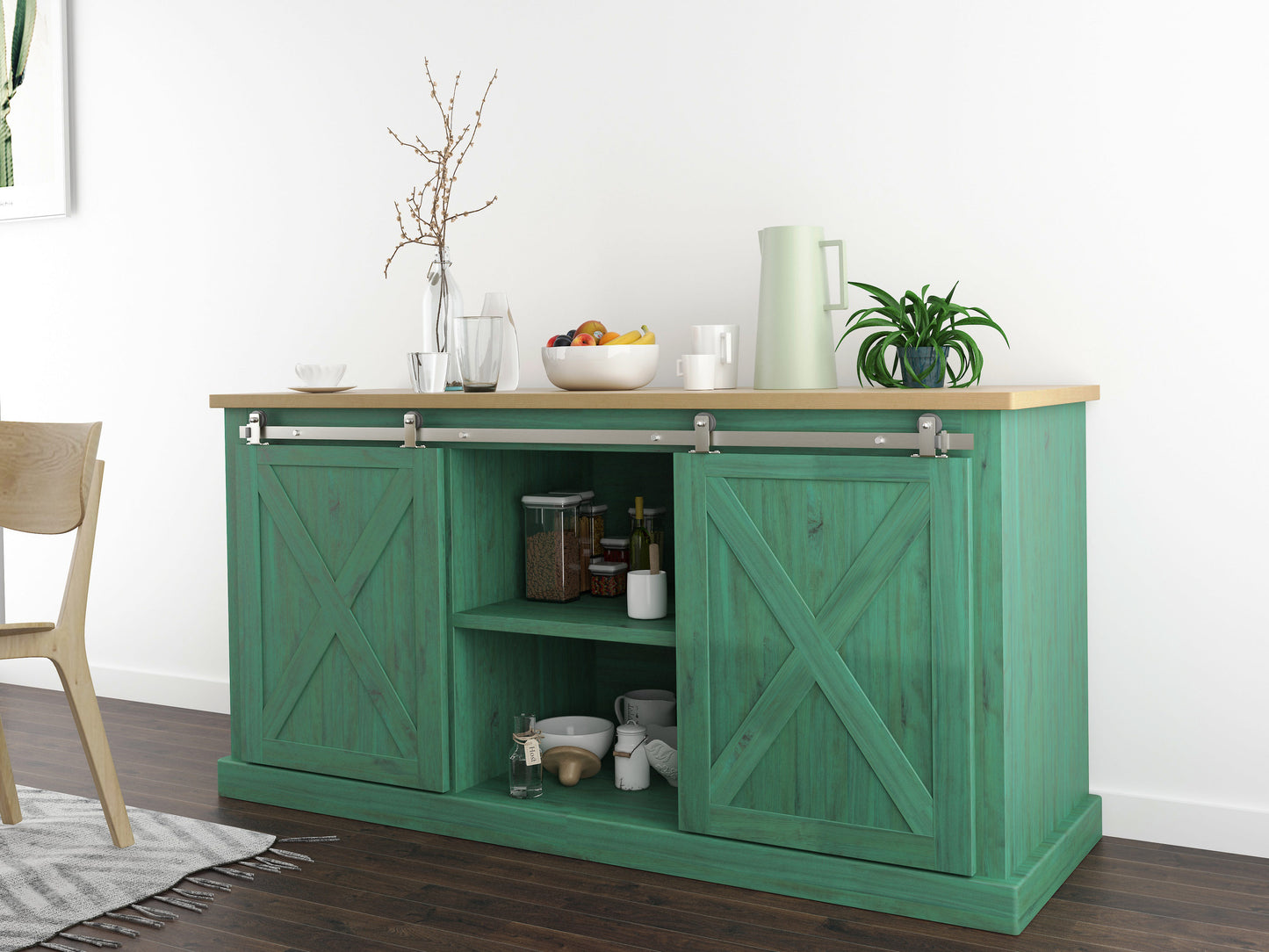 Have a great idea for a small rolling door application, entertainment center, storage area or decorative piece. Think our regular barn door hardware would be a little overkill. Our Quiet Glide™ furniture rolling door hardware kit is exactly what you need. It is versatile, stylish and perfect for a variety of applications.Miniature (Very Small) 48 in. Satin Nickel Top Mount Miniature Sliding Barn Door Hardware Kit for Double Furniture or Cabinet Wood DoorsUse with biparting cabinet or small furniture doors; Hardware does NOT support residential door applicationsHardware includes: (4) straps, (2) rail end stops, (1) steel rail, and necessary fastenersDoor strap size: 3 in. W x 2-1/4 in. H ; Rail size: 48 in. L x 1 in. H x 1/8 in. D ; Great for low profile applicationsRails have 16 in. hole spacingMaximum door thickness is 1-1/8 inchesMaximum weight capacity 88 lbsNo bottom guides, varies on applicationSoft Closed NOT available due to the low profile designCA Residents: Prop 65 Warning(s)