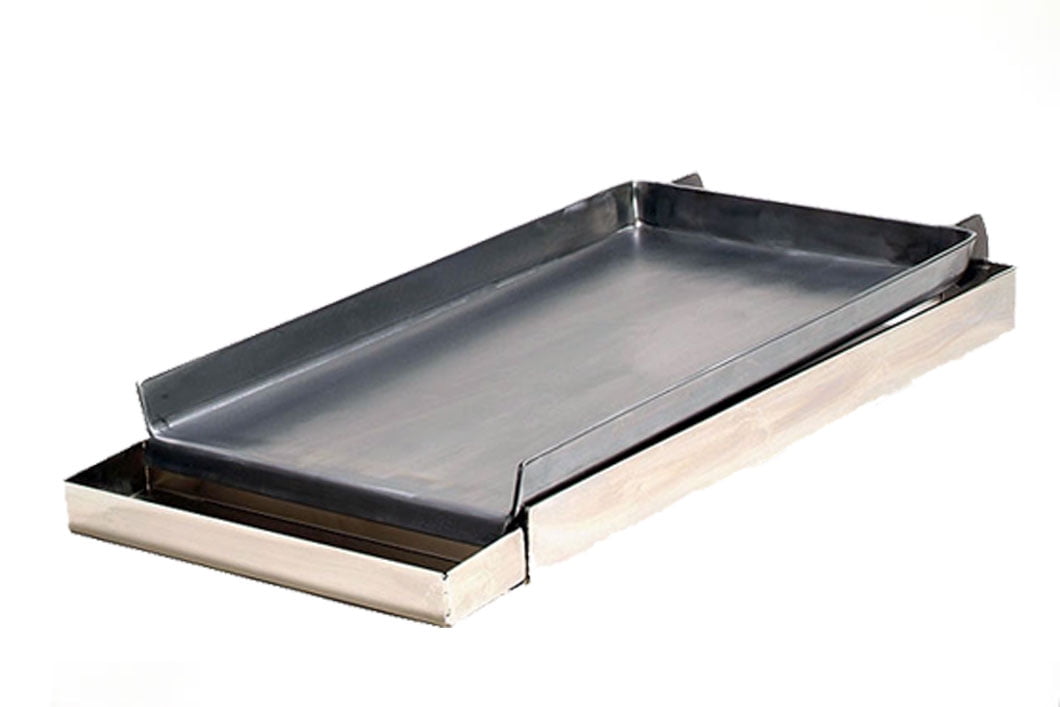 Fits most commercial ranges. This 2 burner griddle is designed for more permanent applications and can handle the higher grease volume of a professional kitchen. It features a removable grease tray and adjustable frame, both made from high quality stainless steel. Griddle is made from 7 gauge steel (aprox 3/16") and has 1-1/2” side walls.
