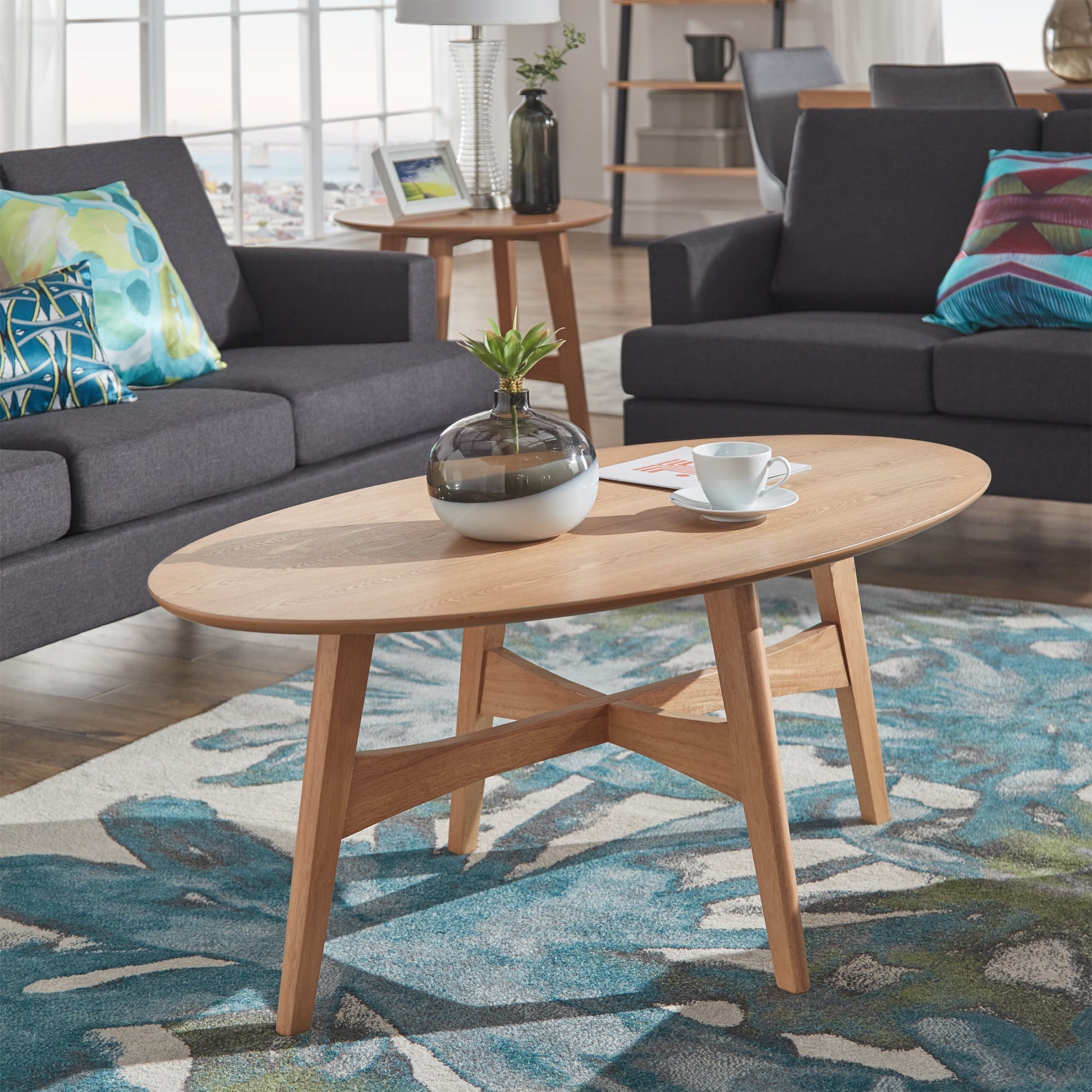 Weston Home Carole Modern Oval Wood Coffee Table in Walnut Finish